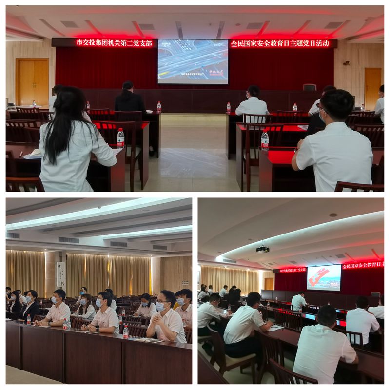 2022年4月15日上午,市交投集團(tuán)機(jī)關(guān)第一、第二黨支部組織黨員開展全民國(guó)家安全教育日主題黨日活動(dòng),集中觀看《護(hù)航之道——總體國(guó)家安全觀縱橫》宣傳教育片。