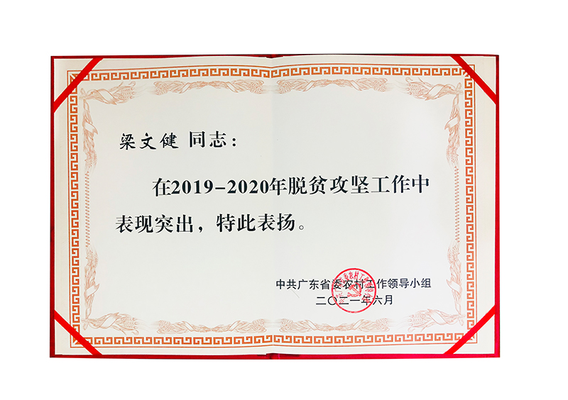 2021年6月,我司梁文健同志榮獲2019-2020年全省脫貧攻堅工作突出貢獻個人