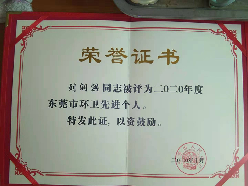 2020年10月1日,二O二O年度東莞市環(huán)衛(wèi)先進個人(劉潤洪)
