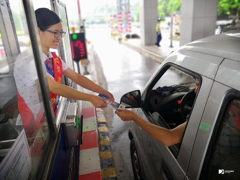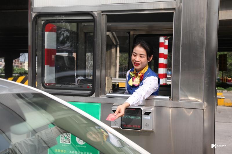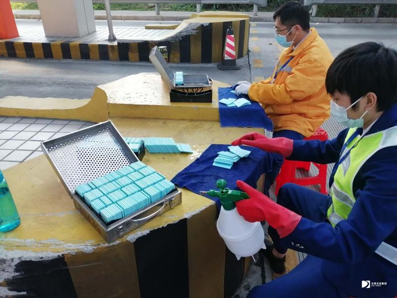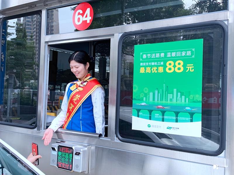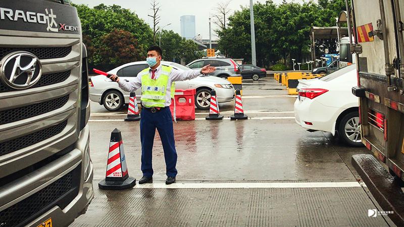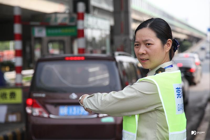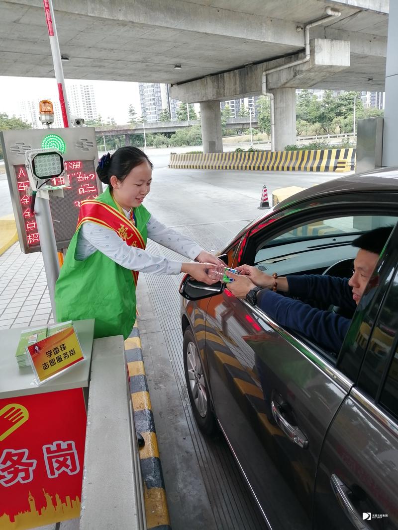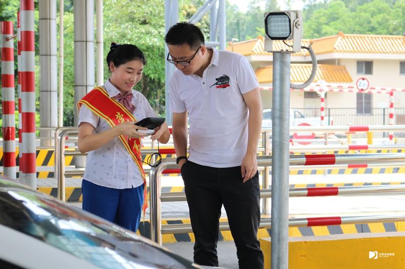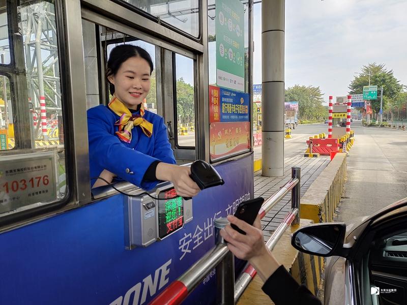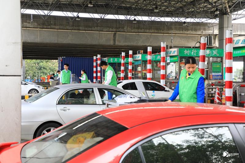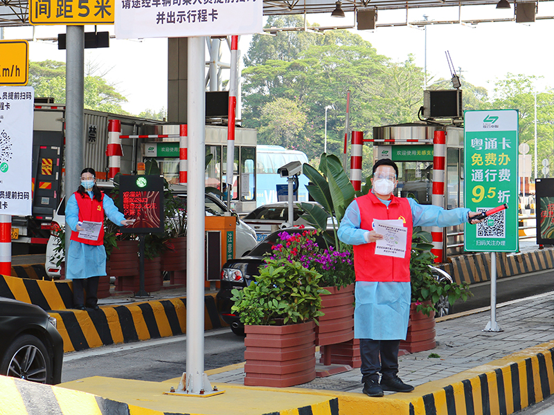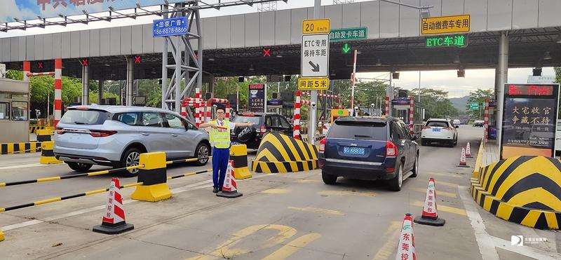東莞控股公司志愿者在莞深高速所轄收費站引導司乘人員有序掃碼通行