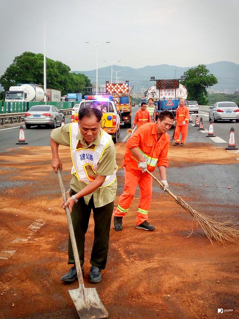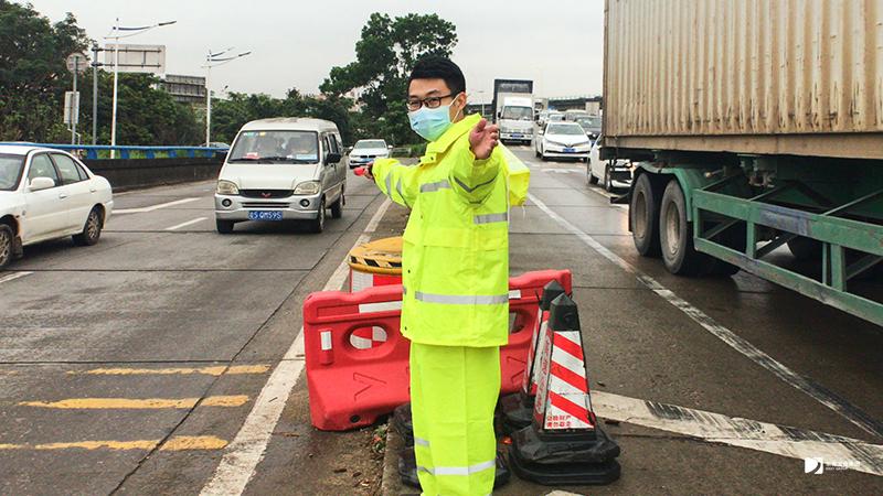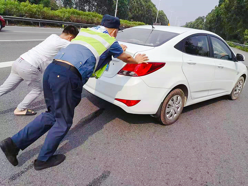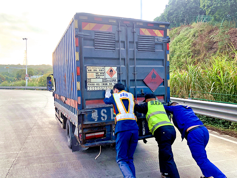 市路橋公司?;⒎止韭氛T協(xié)助司機將壞車移動到安全區(qū)