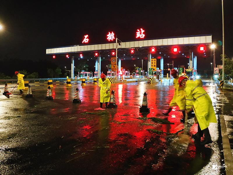 臺風山竹吹襲期間,?;⒎止臼召M人員清掃收費廣場