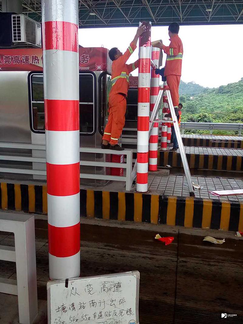 從莞塘清站南行出口535455#車道貼反光膜
