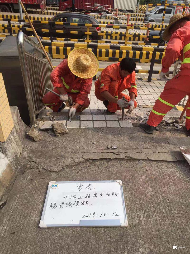 大嶺山站房后面修復(fù)水泥路面及階梯更換瓷磚