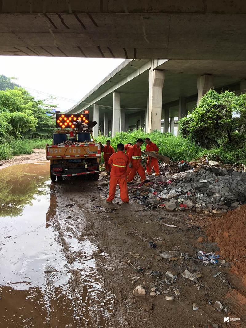 莞深互通匝道橋底下油漆鐵罐雜物清理