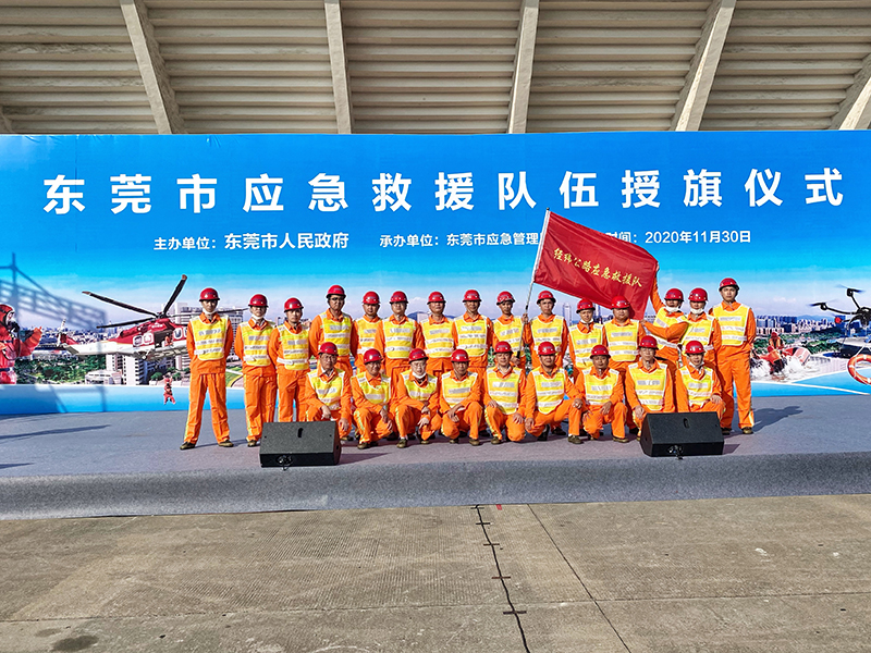 2020年12月1日,東莞市應(yīng)急救救援隊(duì)授旗儀式經(jīng)緯公司合照