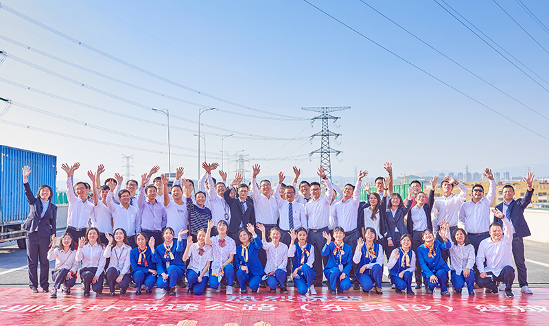 2020年12月29日,深外環(huán)高速東莞段正式通車,圖為參建單位市路橋公司第三管理處和營運單位?;⒎止締T工在儀式上歡呼合影