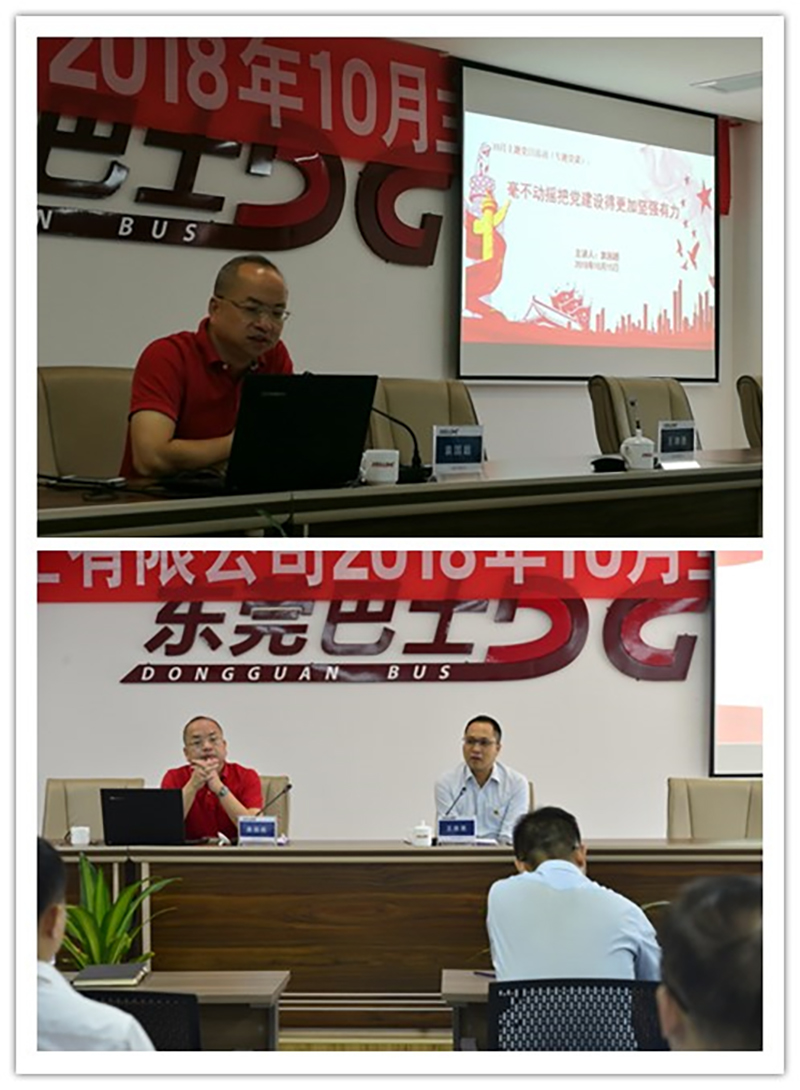 2018年10月15日,東莞巴士黨支部有限公司10月主題黨日活動(專題黨課:毫不動搖把黨建設(shè)得更加堅(jiān)強(qiáng)有力)。